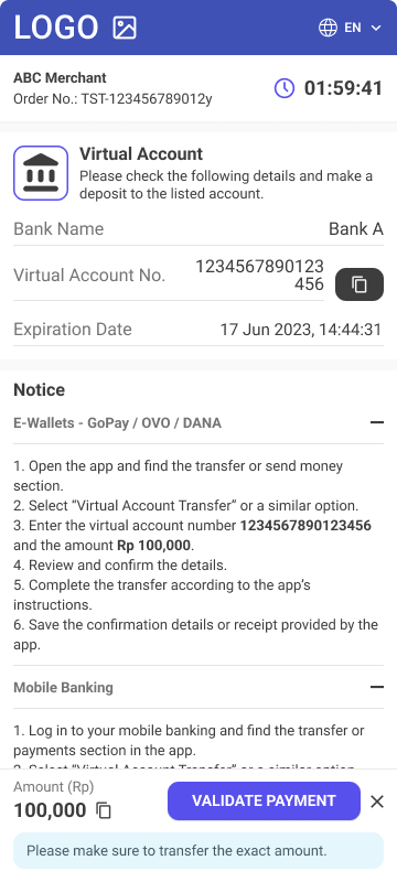 Description - Virtual Accounts Payment is the a popular payment method that requires the customer to transfer funds to virtual bank account via a banking mobile application, internet banking or physically via ATM.