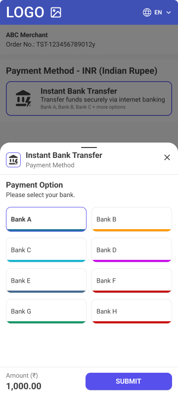Description - Instant Bank Transfer is standard bank transfer payment method where customer is smoothly redirected to the customer’s financial institution online service together with all data to complete the payment.