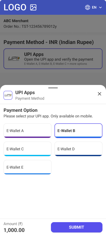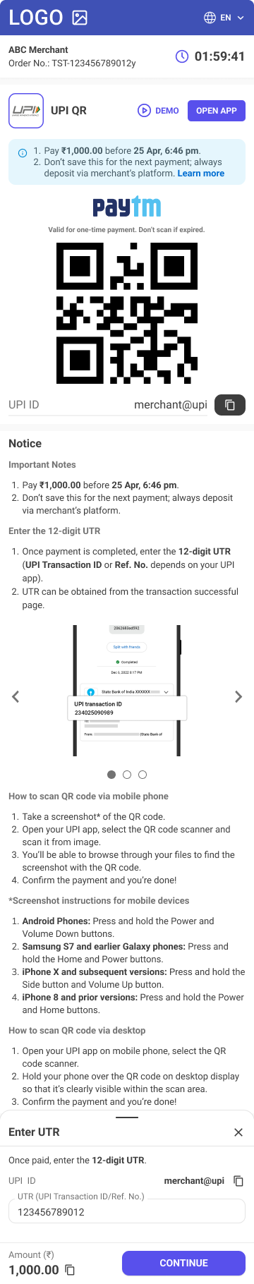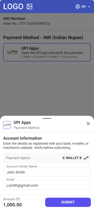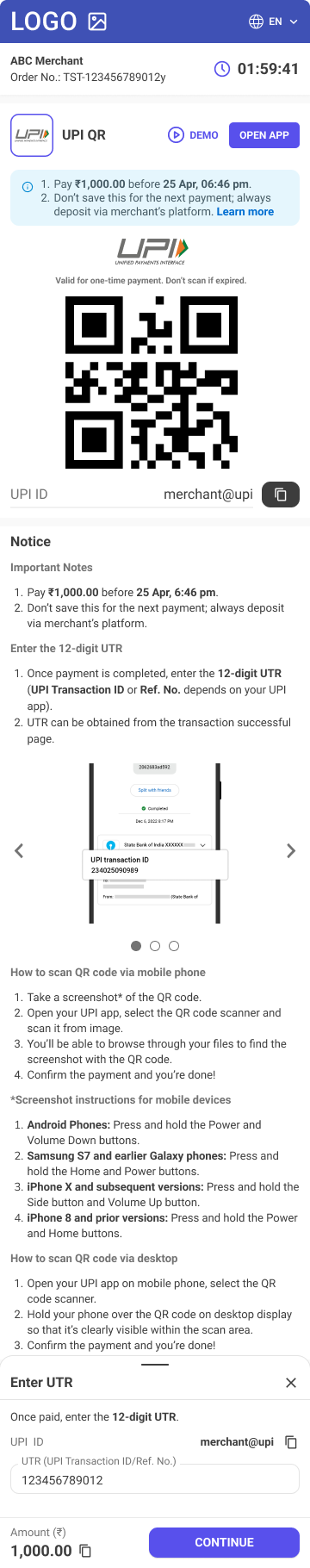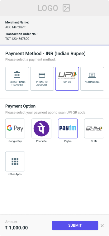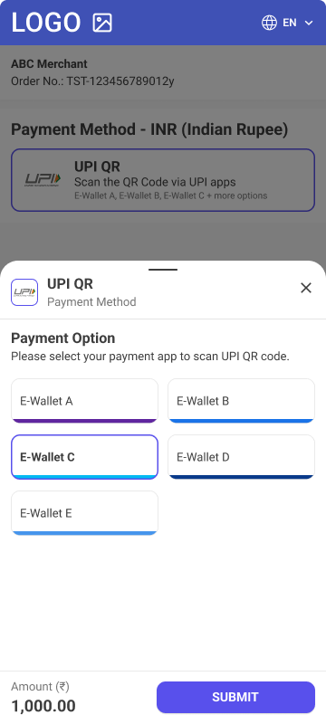 Description - UPI QR is payment method intended for the Indian market. This payment method requires customers to scan QR code by Customer’s Payment service application compatible with UPI payment schema.