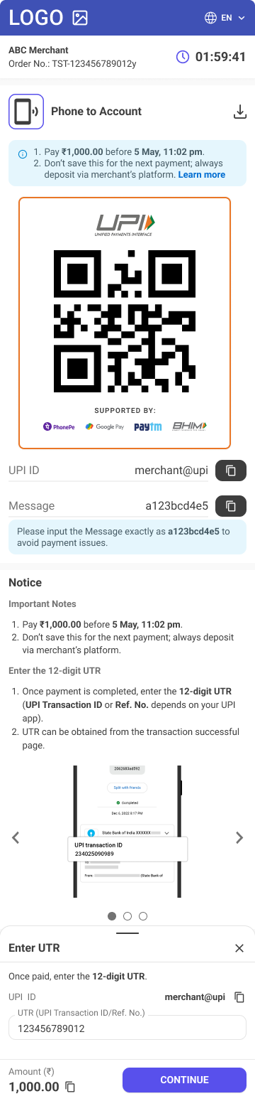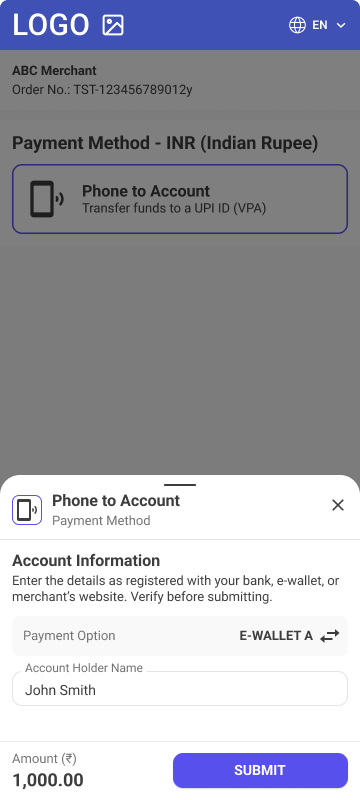 Description - Phone to Account is payment method designed for the Indian market which allows users of GooglePay and UPI wallets to pay using scanning QR codes.